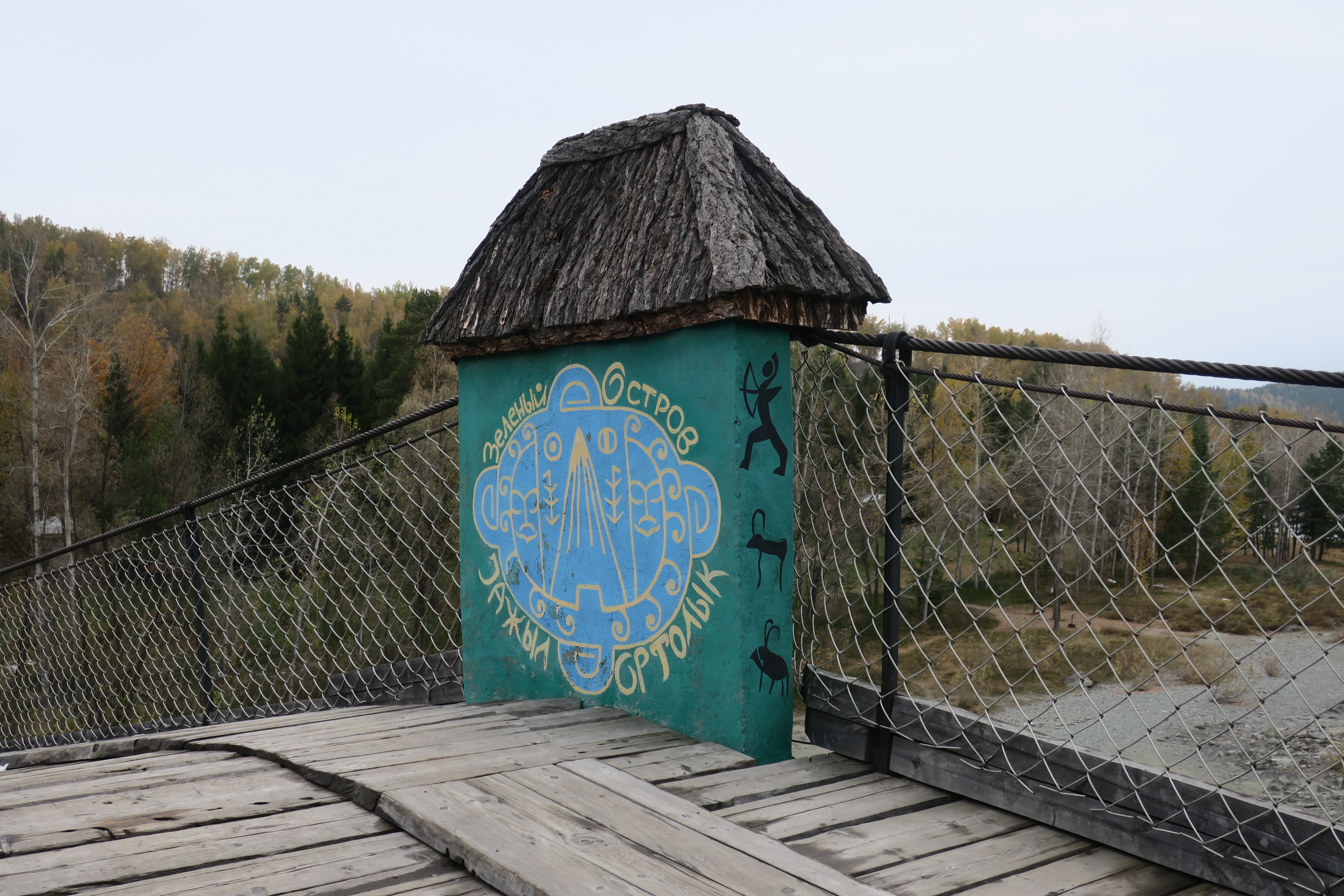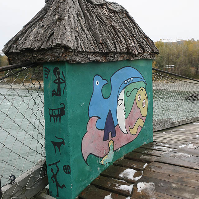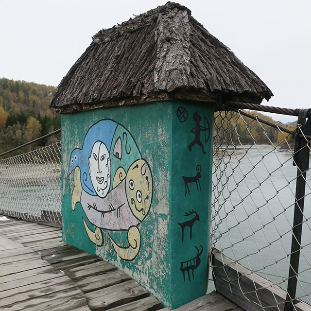 нужно уплатить 50 рублей. Это лёгкий подвесной мост через Катунь.