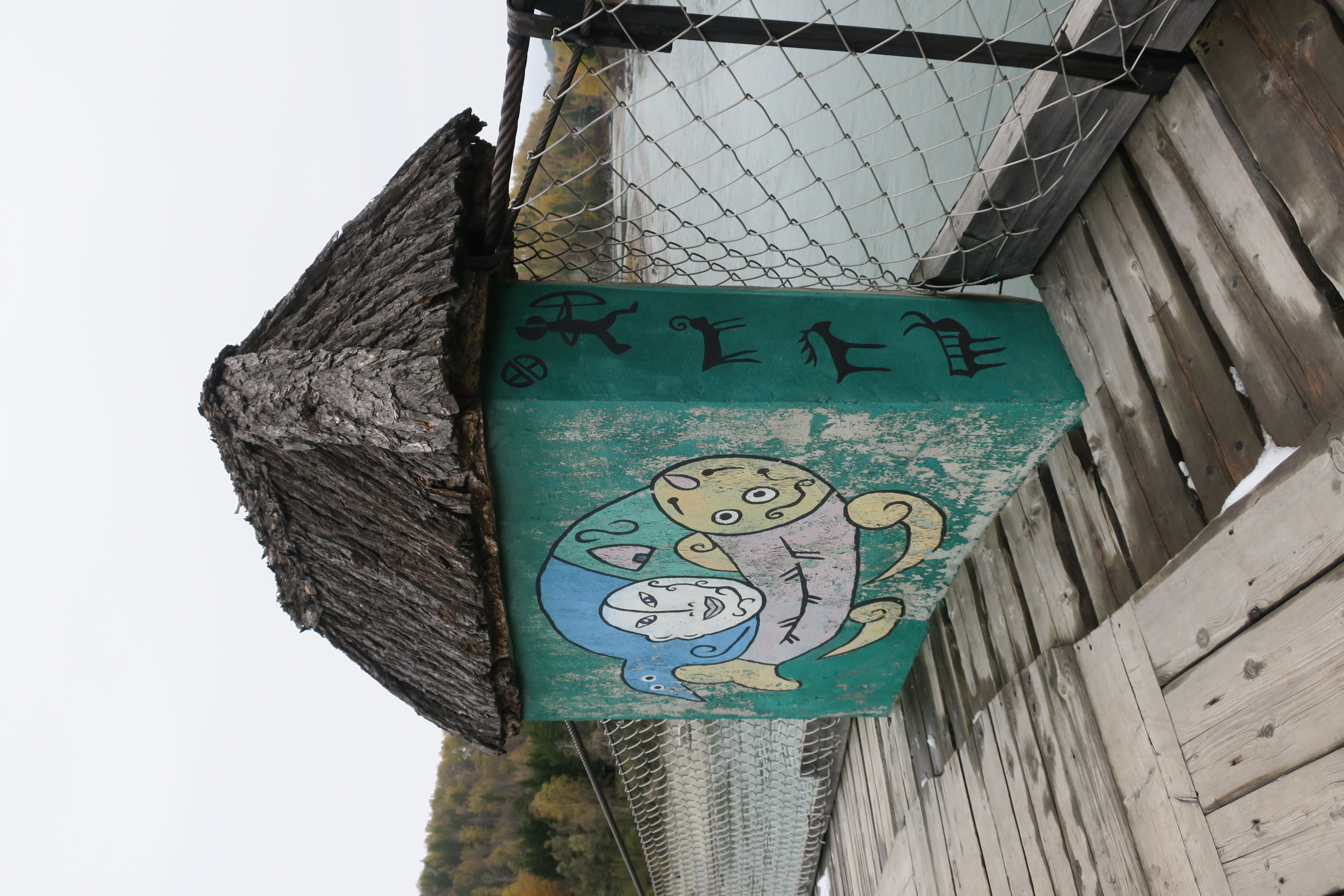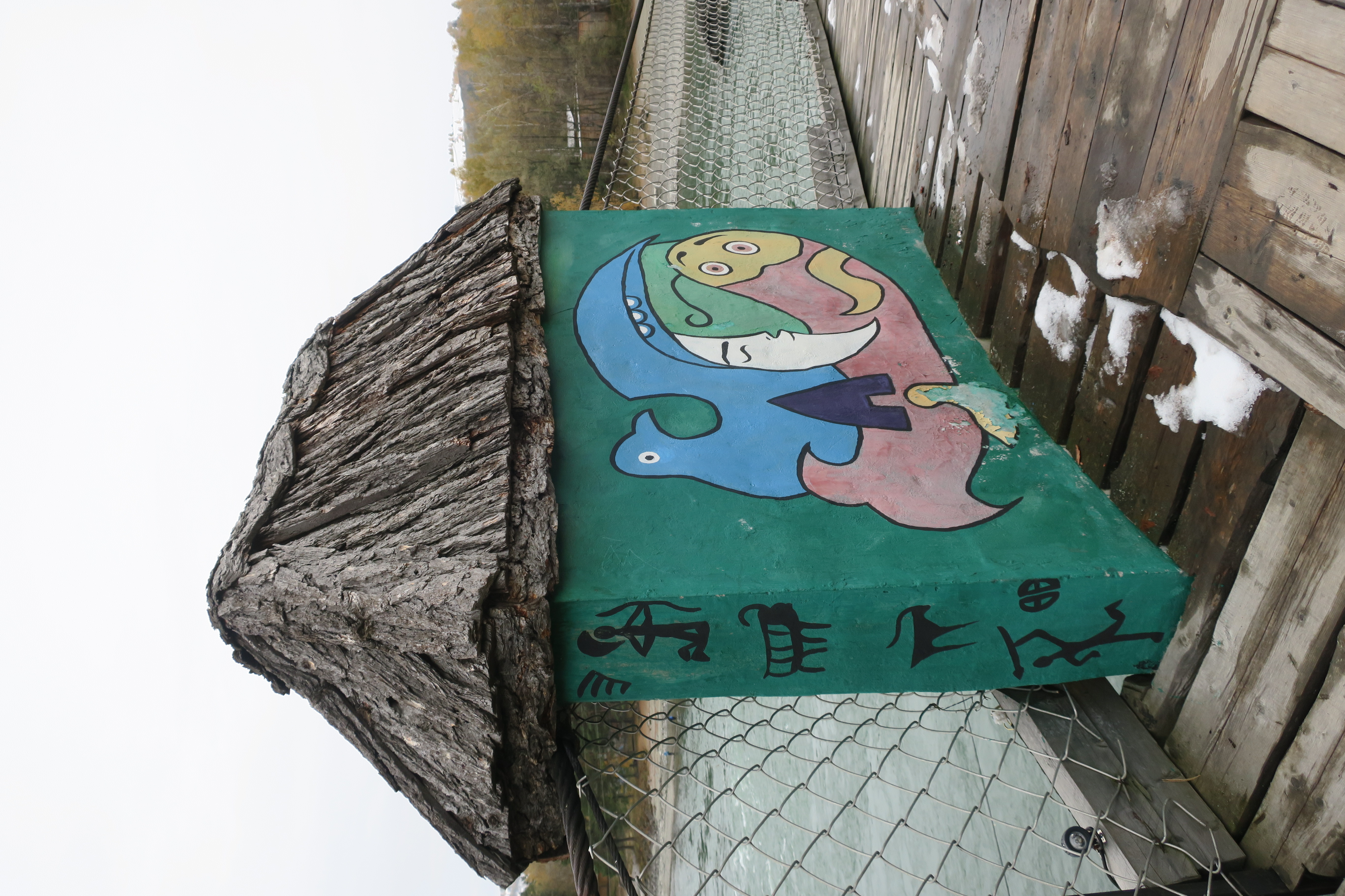 Опоры расписаны в странных сюжетах. В лицах угадываются