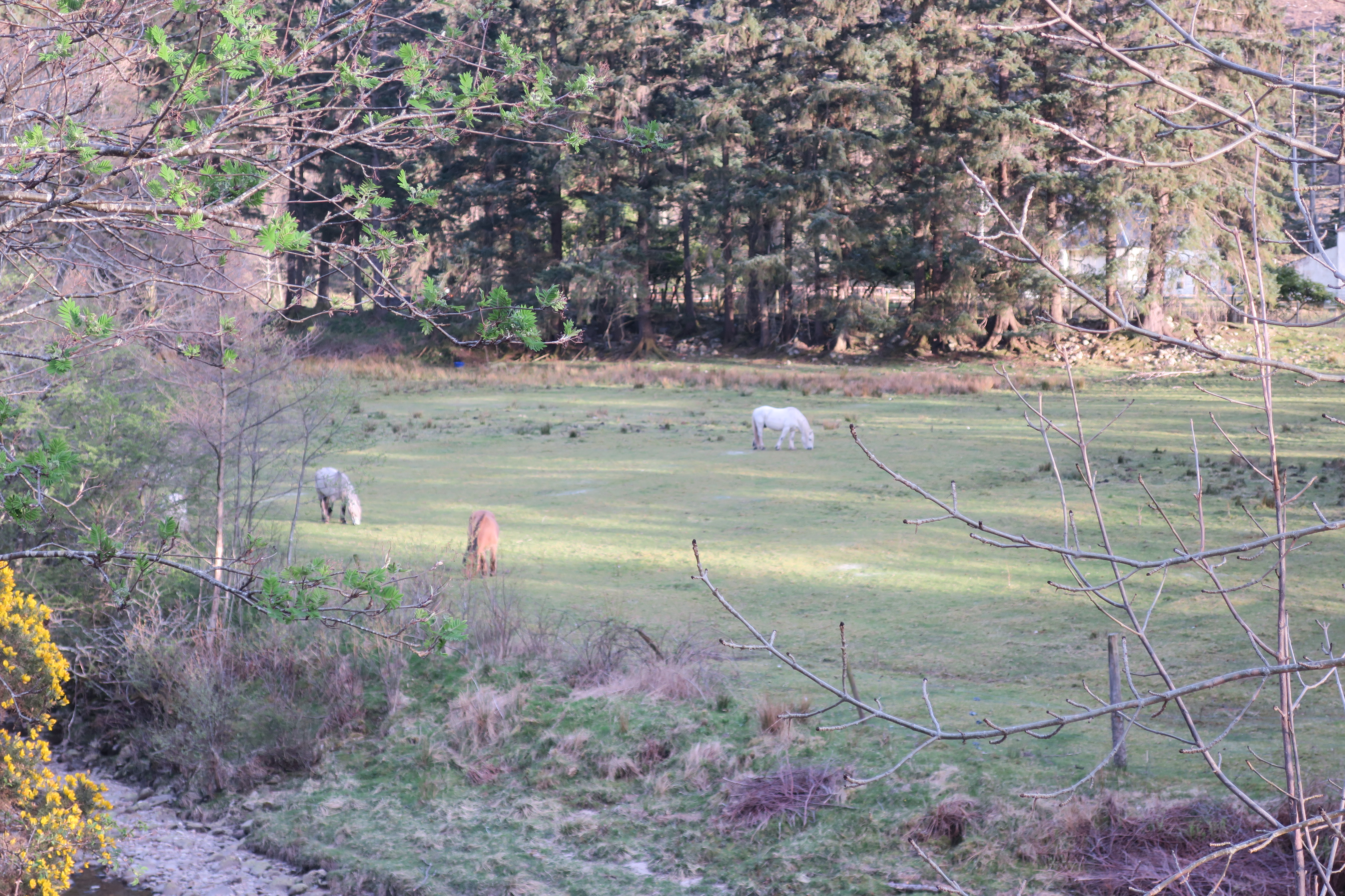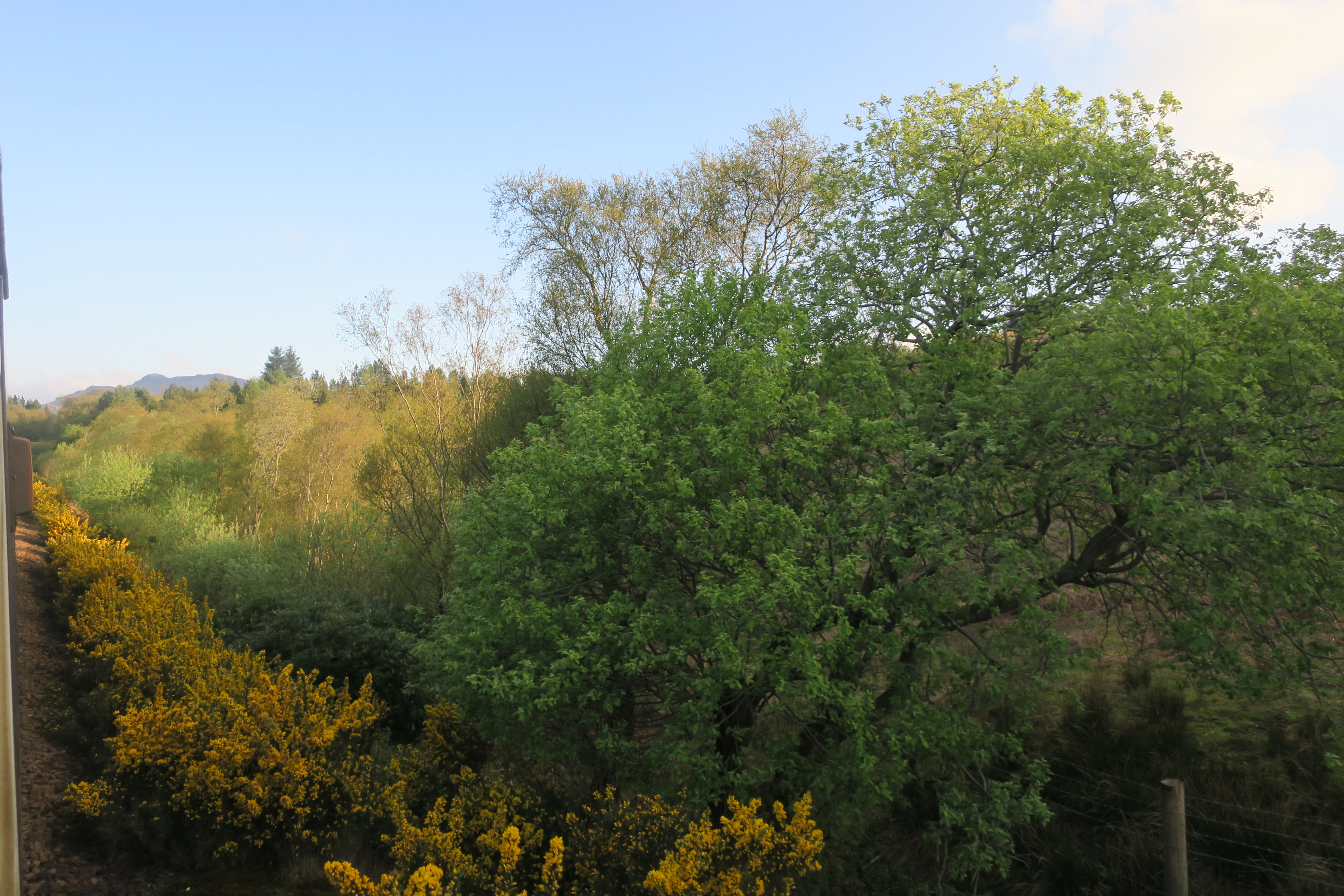 снег, а в Шотландии уже деревья цветут. И ярко-жёлтые заросли дрока тоже