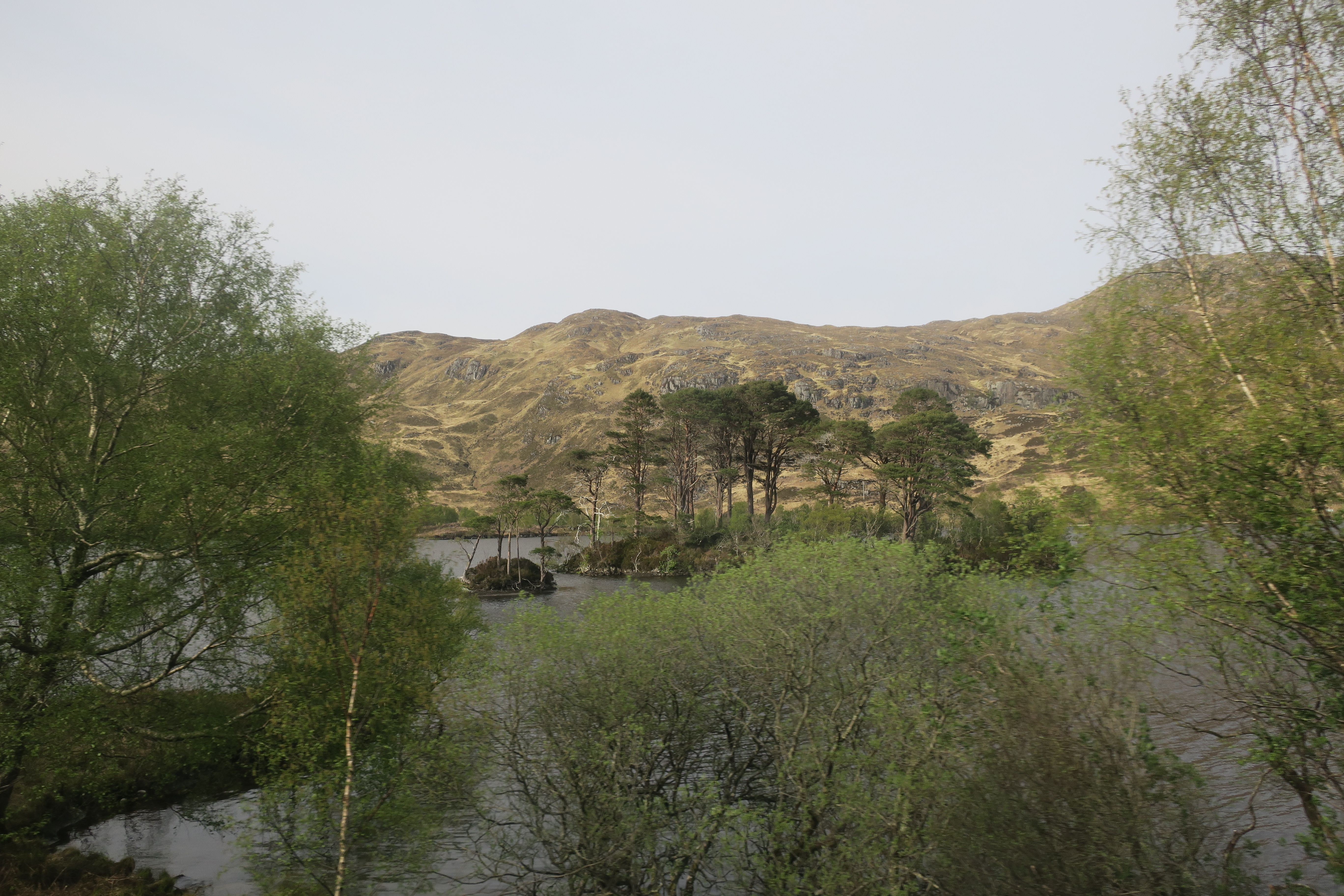 поезде. Вода за деревьями - это Loch Dubh