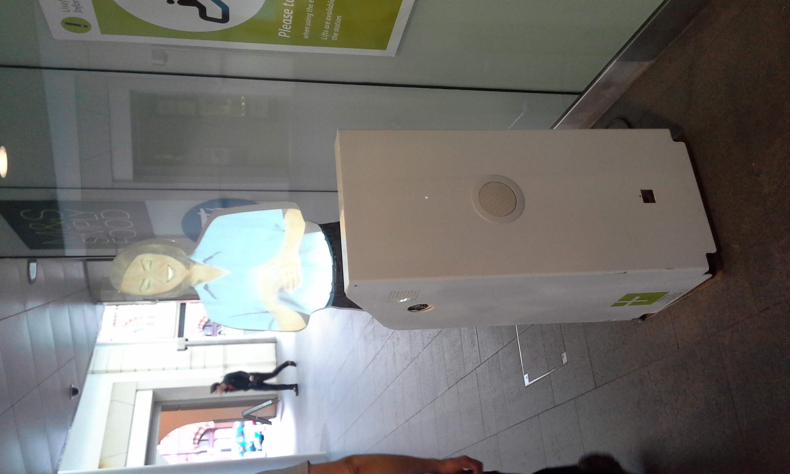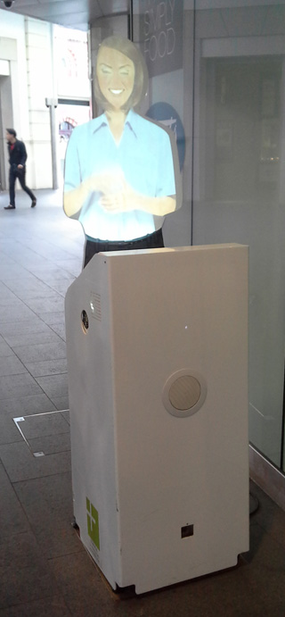 - Женщину вынули - автомат засунулиА ещё на вокзале King's Cross стоят такие картонные тётеньки, которые всё время спрашивают через громкоговоритель в тумбе: «Can I help you?» Мне с ней не о чем было поговорить, так что уж не могу знать, как хорошо эта говорилка разбирает речь и насколько компетентно даёт ответы на вопросы пассажиров.