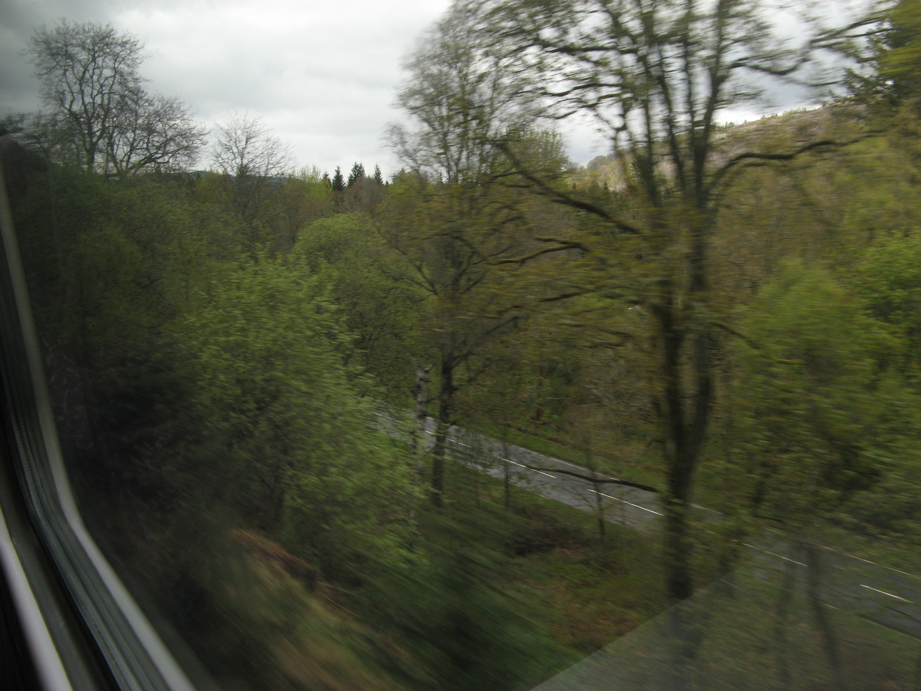 - Наконец мой поезд был подан под посадку, и я в одном из его вагонов выехал на встречу с гордой северной страной. Теперь будет много фотографий, сделанных из окошка поезда. Надо отметить, что поезда - наш и встречные, которые я мог разглядеть на остановках - шли полупустые. Конечно, с одной стороны выгоднее гонять поезда пореже, чтобы были больше заполнены пассажирами - это была бы значительная экономия топлива. Но с другой стороны, разве пассажиры хотят ездить в поездах, которые ходят всего пару раз в день, будучи утрамбованными как шпроты в банке?